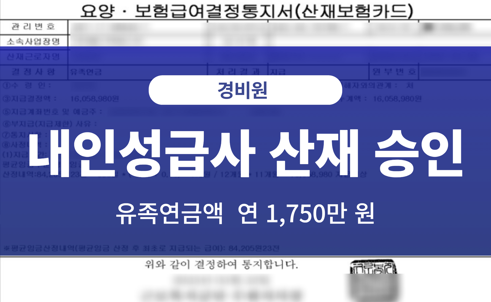 산재 승인으로 유족보상연금을 수령하고 있습니다.