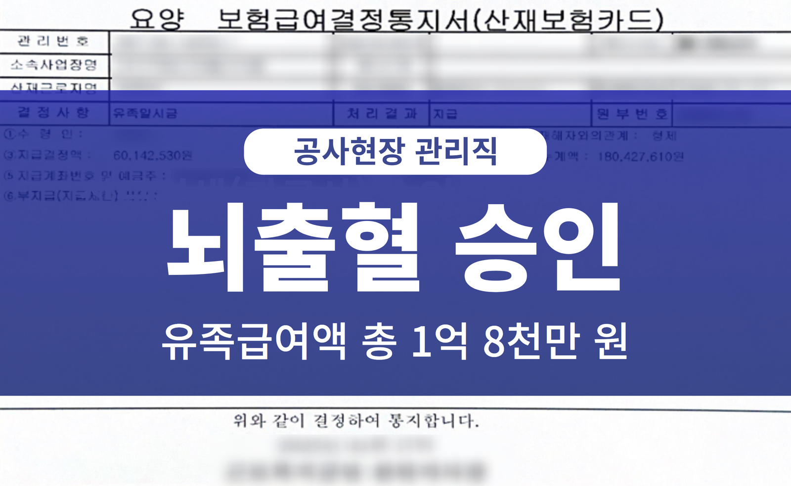 현장관리직 근로자의 뇌출혈 유족보상 승인 사례
