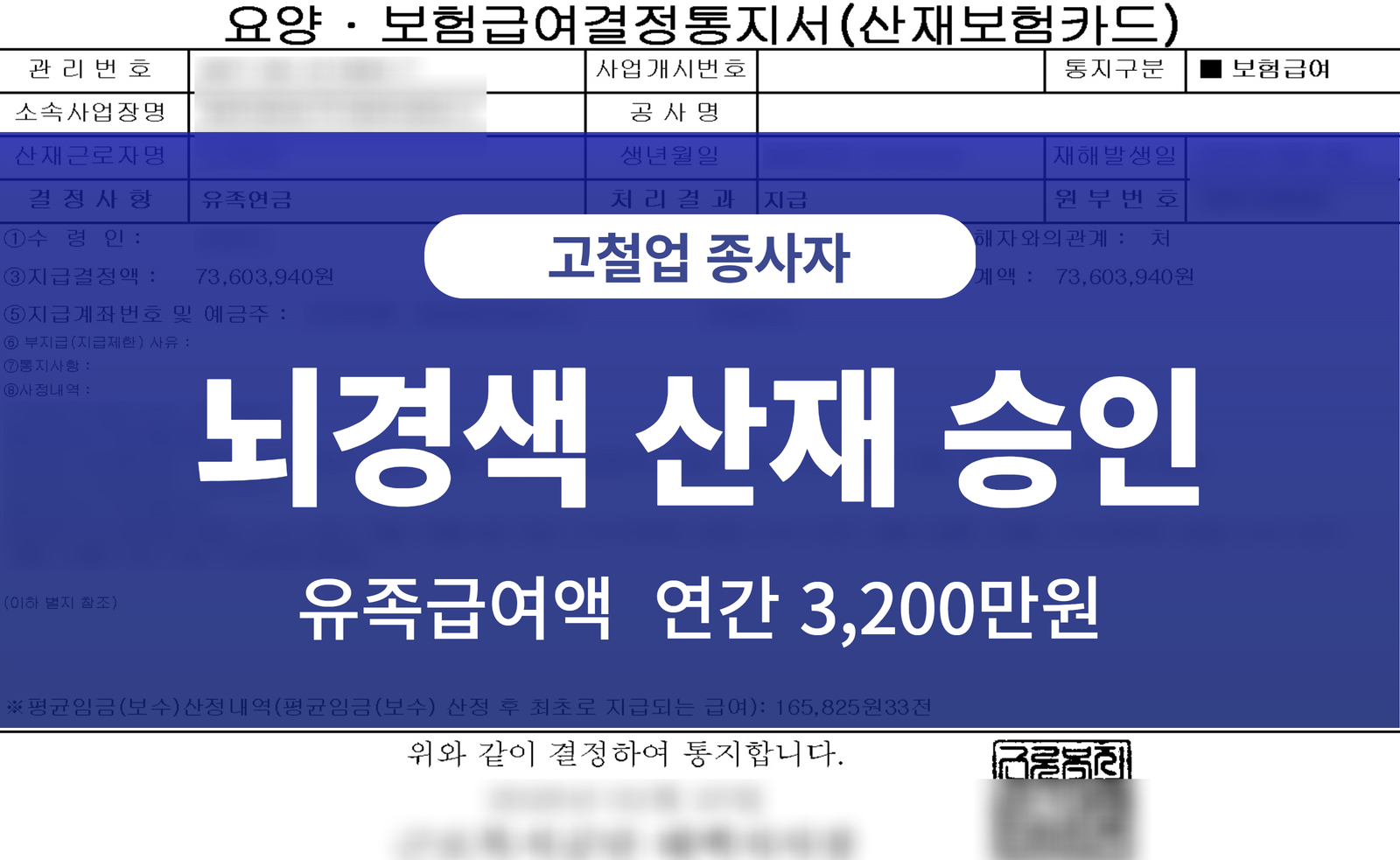 최종적으로 고인의 사망은 산재로 인정받아 유가족은 '유족급여 및 장례비' 보상을 받았습니다.