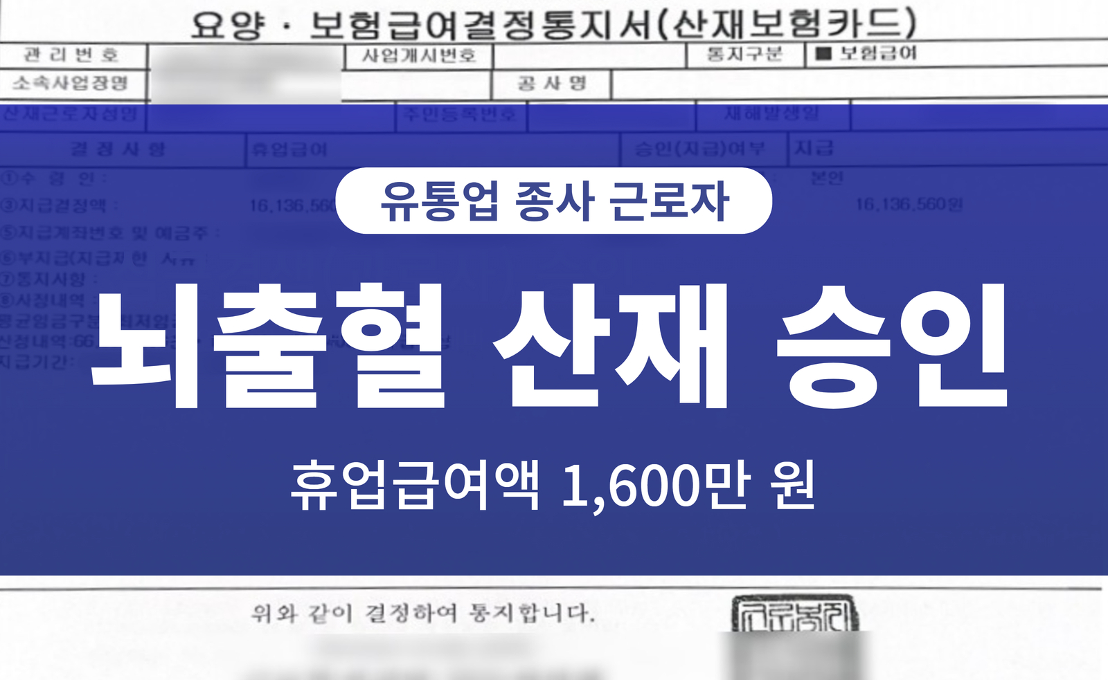 [뇌출혈] 유통업 종사자 뇌출혈 요양급여/장해급여 보상 사례