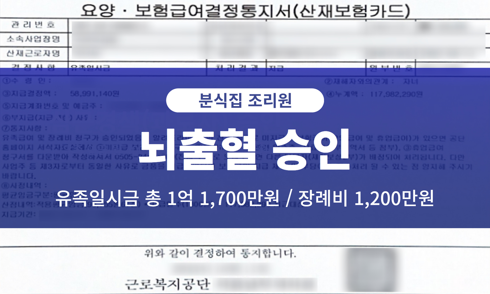분식집 조리원의 뇌출혈 승인 사례