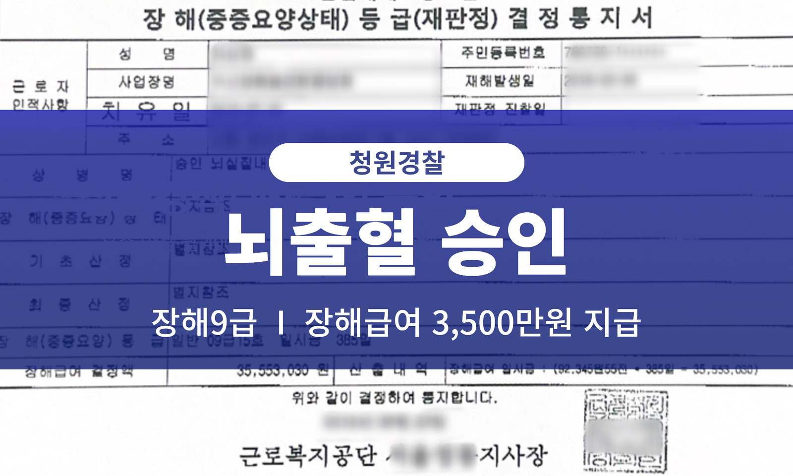 또한 뇌내출혈 후유증으로 장해 10급에 해당하는 장해급여 3,500만원을 지급받았습니다.