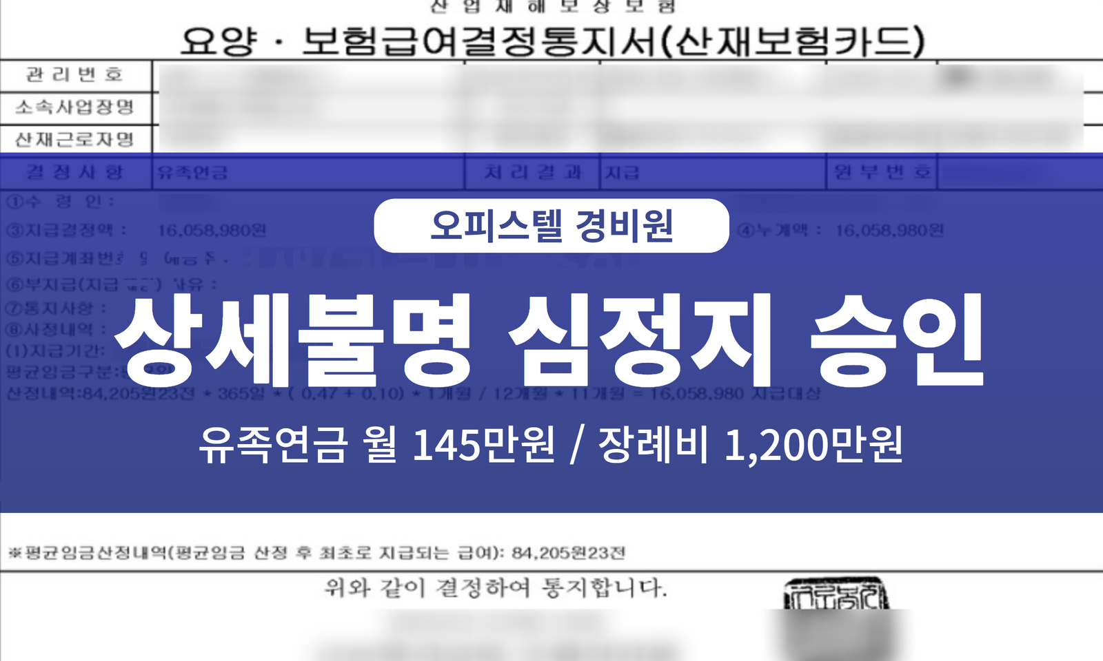주장하였으며, 이를 인정받아 유족급여 및 장례비를 보상받았습니다.