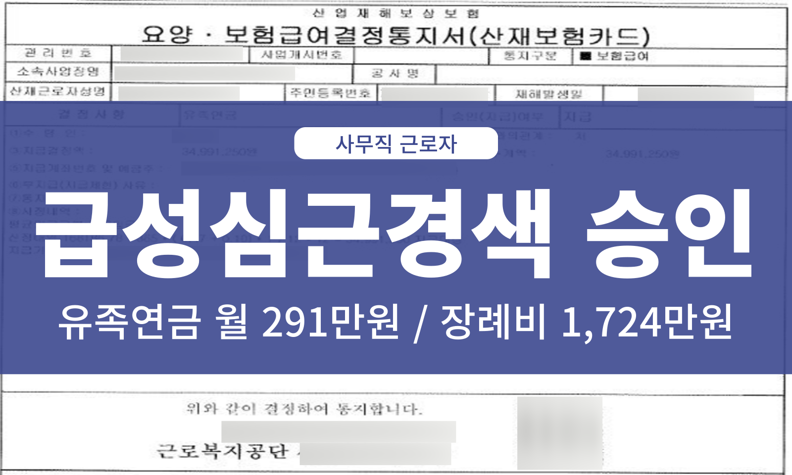 사무직 근로자의 심근경색 산재 유족연금 승인 사례