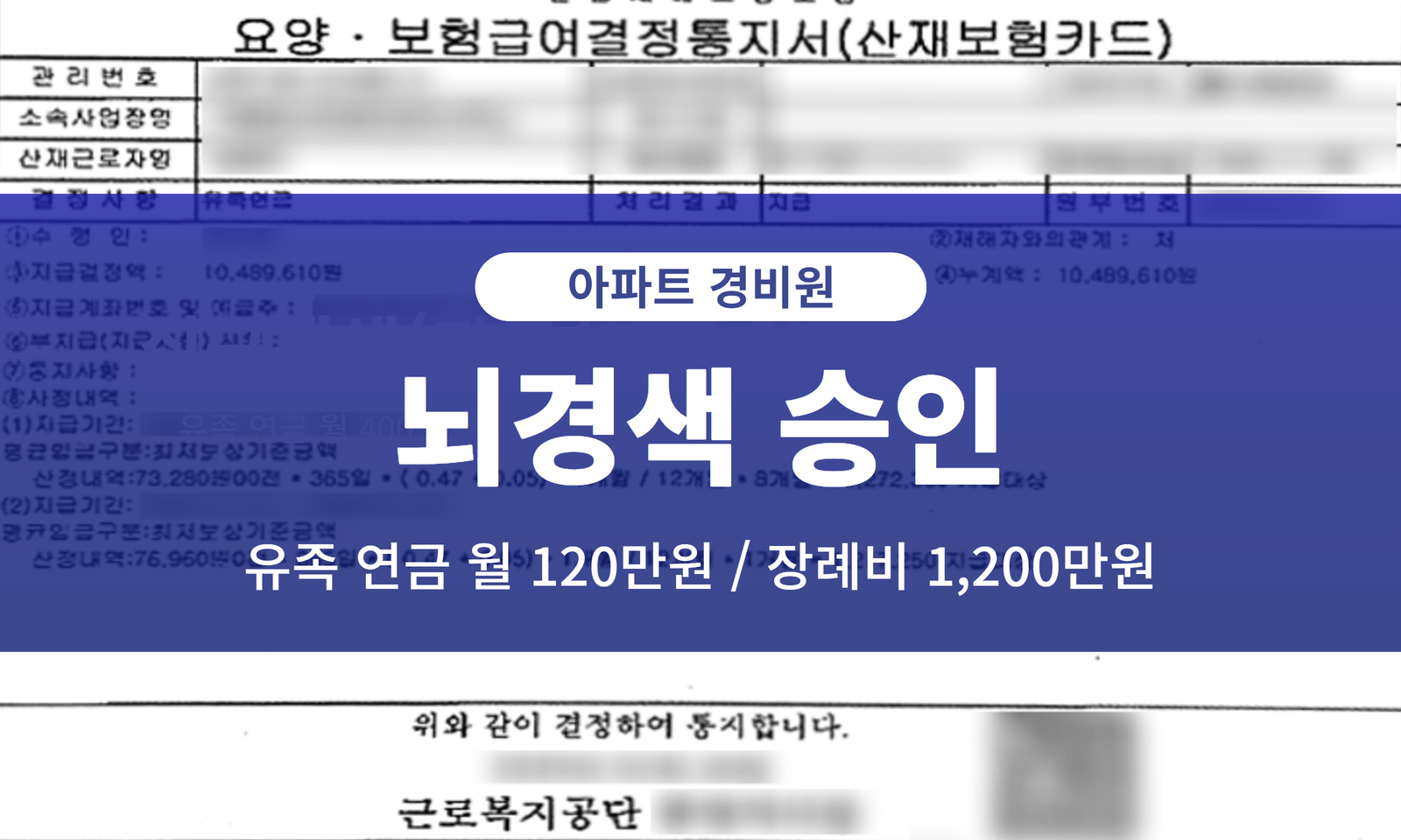 당 센터는 고인이 아파트 경비원으로 근무하며 뇌경색을 승인받고 폐렴으로 사망하게 되어