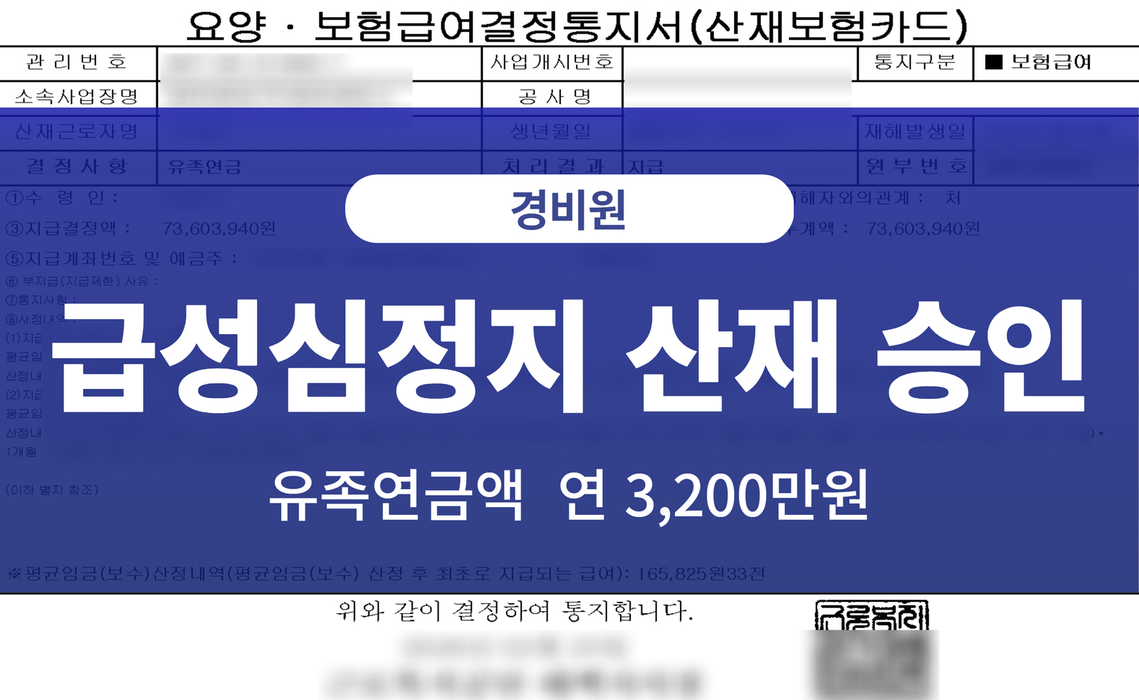 경비원 급성심정지 산재 유족 보상 사례